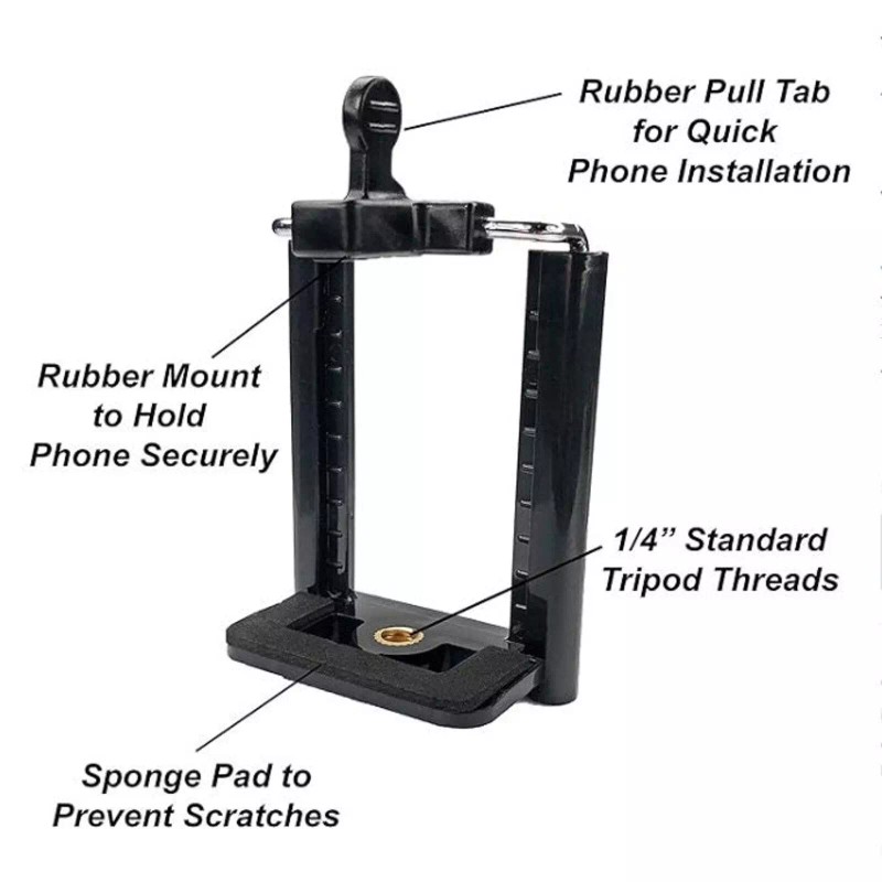✅ PROTECTS YOUR PHONE - spring loaded cell phone holder with a strong rubber grip top and soft foam bottom pad that protects your phone, does not scratch or leave marks on the device, screen is untouched by this phone tripod adapter