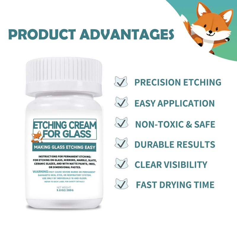Features: Transform ordinary glass items into extraordinary works of art with our etching cream. Whether you're making personalized gifts, home decor, or creating professional looking glass art, the etching cream kit for glass is an essential component of your glass etching kit.