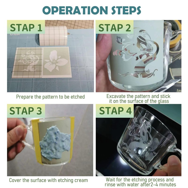 - 【Fast and Effective, Easy Personalization】 This specially formulated etching solution for glass cream allows you to create permanent, beautiful etched designs on glass, mirrors, and household glassware in just minutes, with no experience required