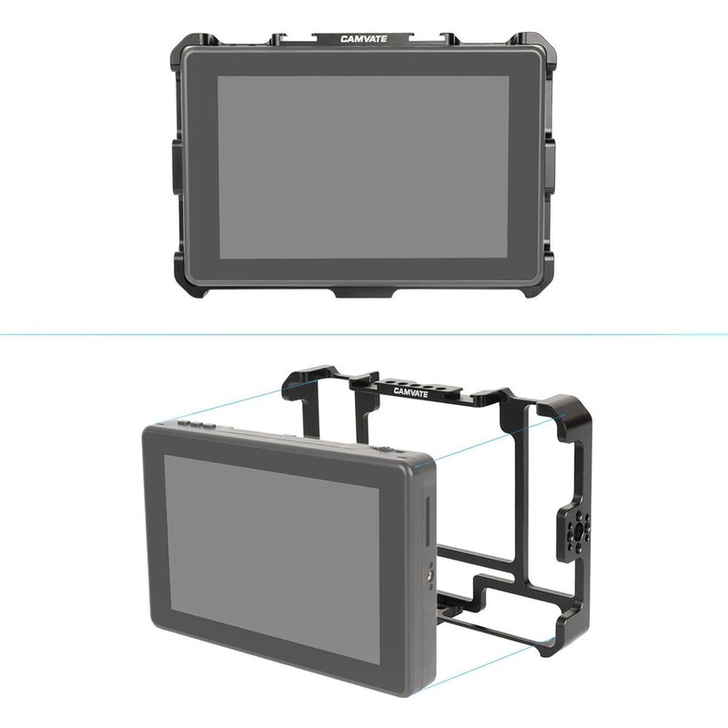 La jaula para monitor CAMVATE está diseñada exclusivamente y hecha a medida para mornitores FeelWorld LUT7 y LUT7S en la cámara de 7 pulgadas. Es un complemento perfecto con numerosos puntos de montaje de 1/4"-20 rodeados para fijar accesorios adicionales. Además, viene con dos soportes para zapatos basados en la parte superior.