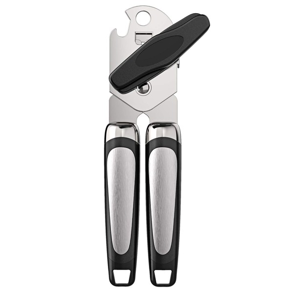 Can Opener, Kitchen Durable Stainless Steel Heavy Duty Can Opener Manual Smooth Edge Food Safety Cut 3-in-1 Can Openers Bottle for Seniors with Arthritis Hands Friendly