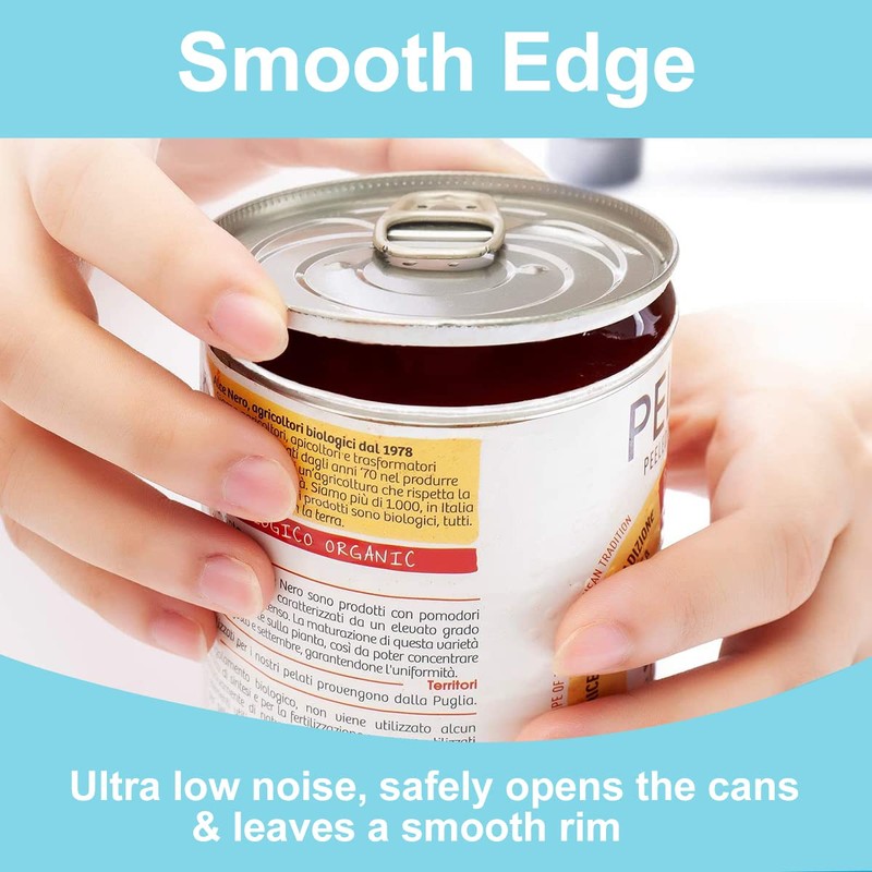 - 【Smooth Edges Can Opener】: With the latest technology,our can opener cuts the inner side of the lid safely, leaves NO Sharps Edges. Which makes cutting safer than regular.Turn off the power after using.