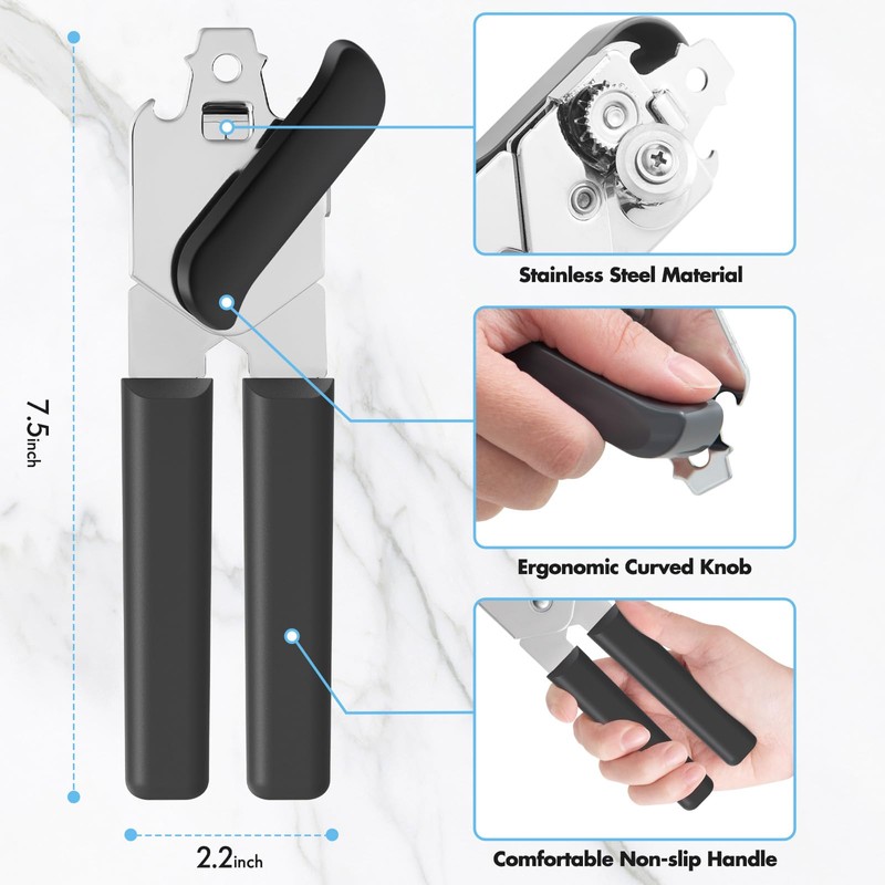 - 【Effortless Opening】The Heavy-Duty Can Opener is the perfect kitchen tool for effortlessly opening cans of all sizes.High-strength carbon steel blades and precision gears ensure smooth, effortless cutting every time—opening any can with minimal hand strength. (ideal for seniors & arthritis)