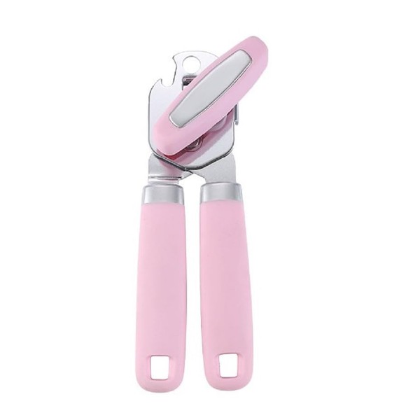 Can Opener Manual Handheld Strong Manual Can Opener Smooth Edge Cut, Can Opener Heavy Duty, Comfortable Soft Handle, Built-in Bottle Opener (Pink, One Size)