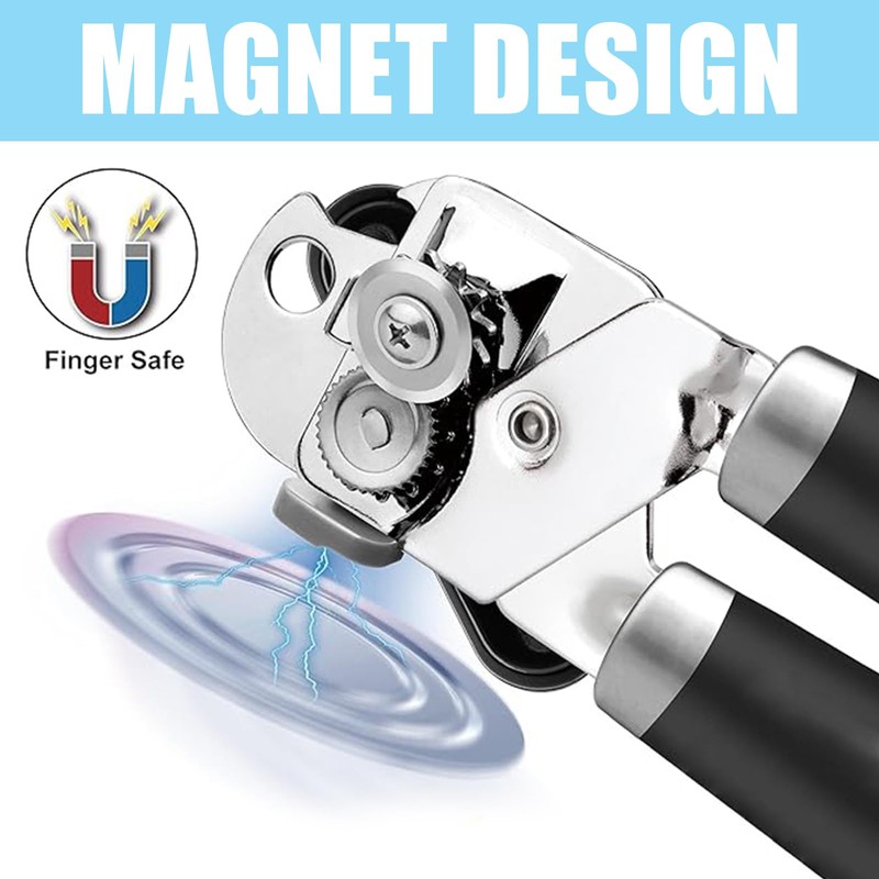 - [MAGNETIC LID LIFTER] - Built-in strong magnets to firmly lift and secure the lid, preventing it from falling into the jar and preventing accidental cuts. Enjoy a safer and cleaner can opening experience every time.