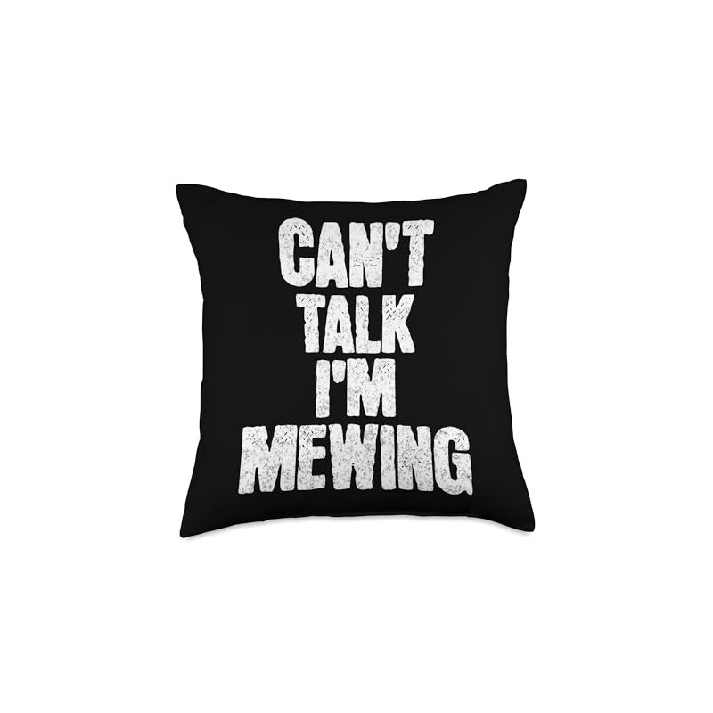 Can't Talk I'm Mewing Funny LooksMaxxing Meme Quote Vintage Throw Pillow