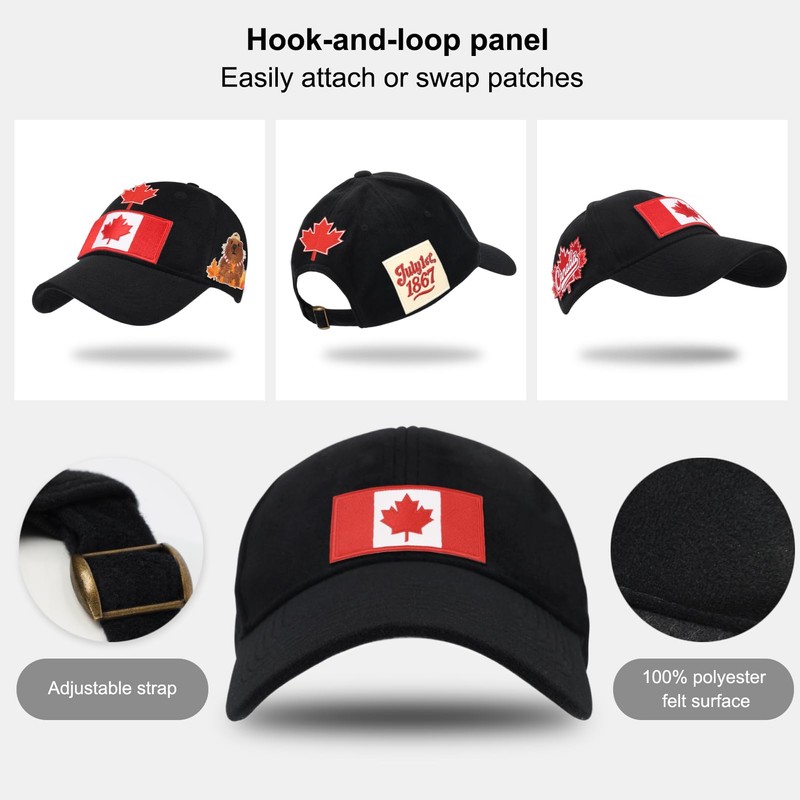 Canada Baseball Cap with Hook and Loop Patch, 5 Unique Embroidered Canada-Themed Patches – Perfect for Canada Day, Gift for Dad Hat, Husband Cap, Golf Cap, Men & Women Black
