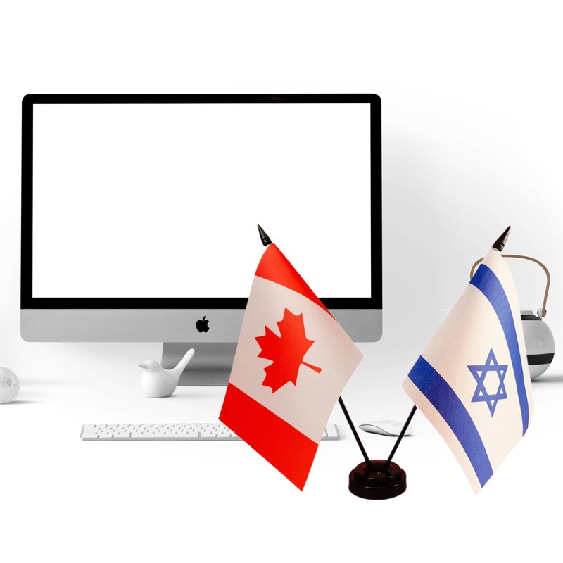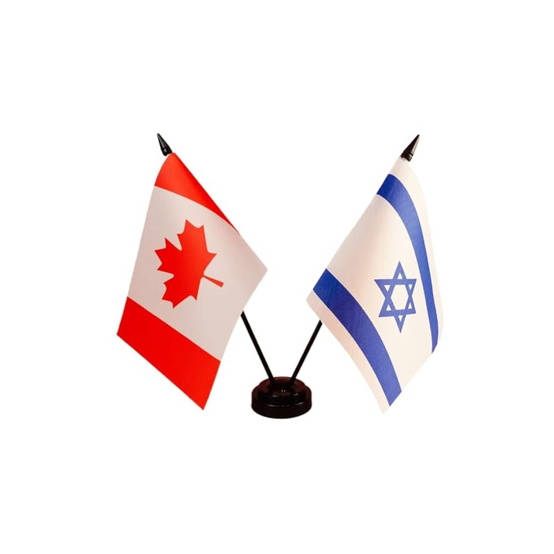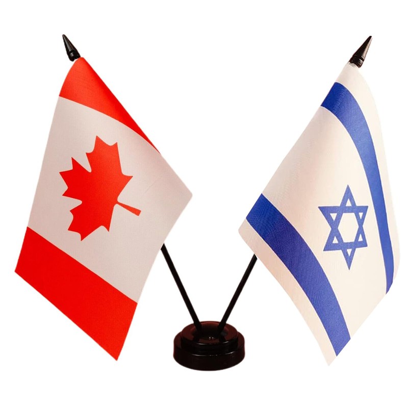 Canada Israel Friendship Flag, Israeli Desk Flag,Canada Israeli Desk Flag,Twin Table Flag,Israeli Office Table Flag on Stand Base, Decorations for Offices, Families, Conference rooms