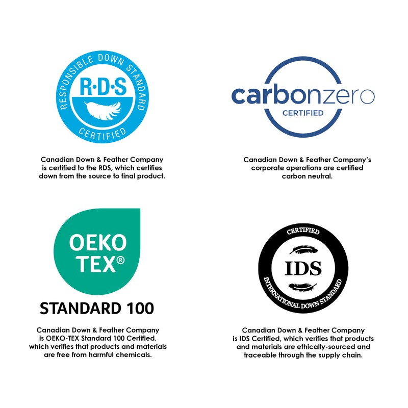 - Outer Shell - 255 Thread Count: Prevents down / feather from escaping. 100% Fine cotton allows the down to breathe.