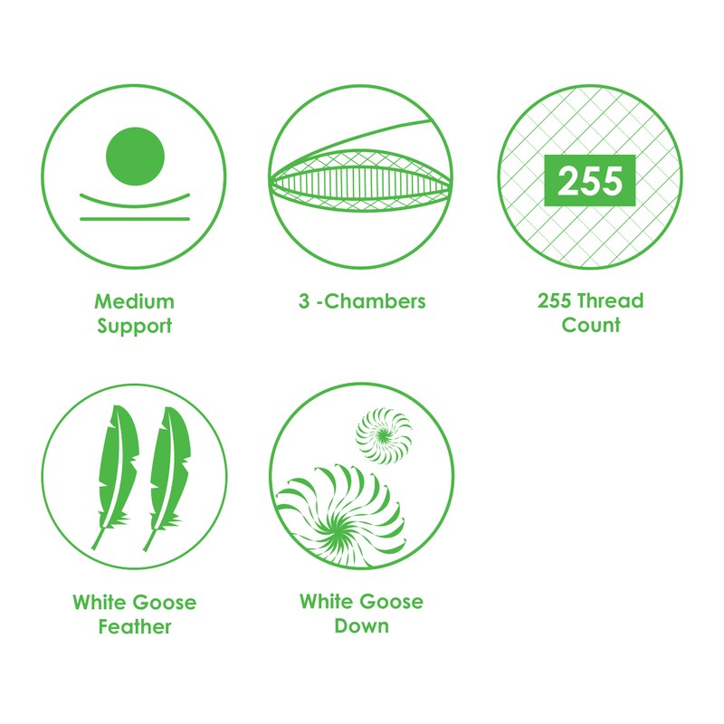 - 3 Chamber Pillow-in-a-Pillow Design: Offers the luxury of a down pillow with the support of a feather pillow