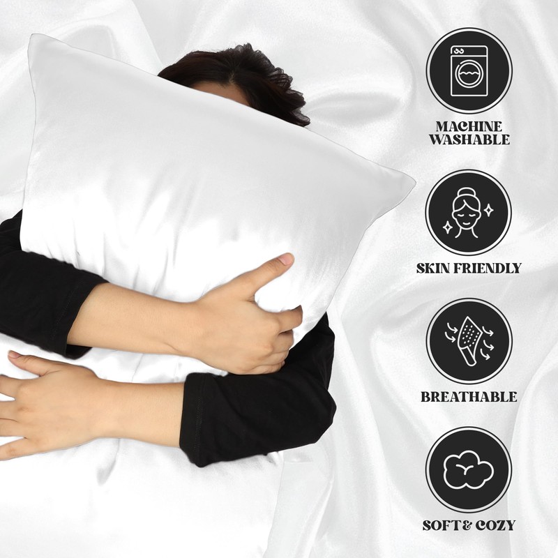 Luxury That Fits Your Budget : Indulge in affordable luxury with our White satin pillowcases encasement. They're not only high-quality but also durable, giving you that luxurious feel without the expensive price tag. Treat yourself without compromising your budget.