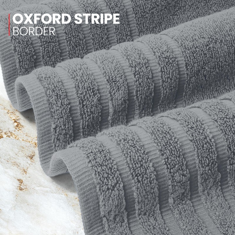 - ELEGANT OXFORD STRIPE DECORATIVE BORDER DESIGN: The Stylish Oxford Stripe border design adds a lavish touch to home décor with matching Royale Brand Bath Towels, Hand Towels, Washcloths / Face Towels & Bathroom Towel Sets.