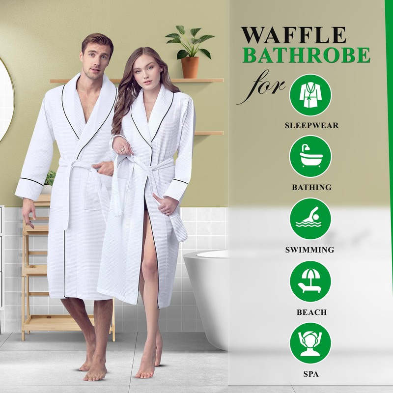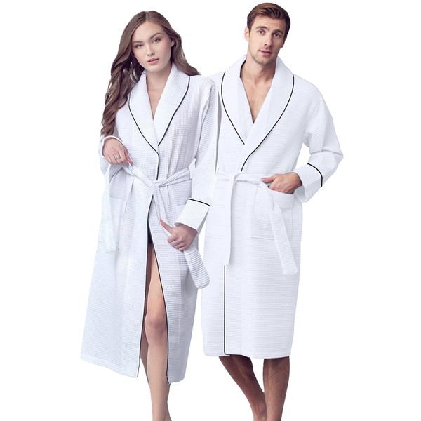 Canadian Linen Waffle Bathrobe (CA/US, Alpha, Large, Regular, Regular, White)