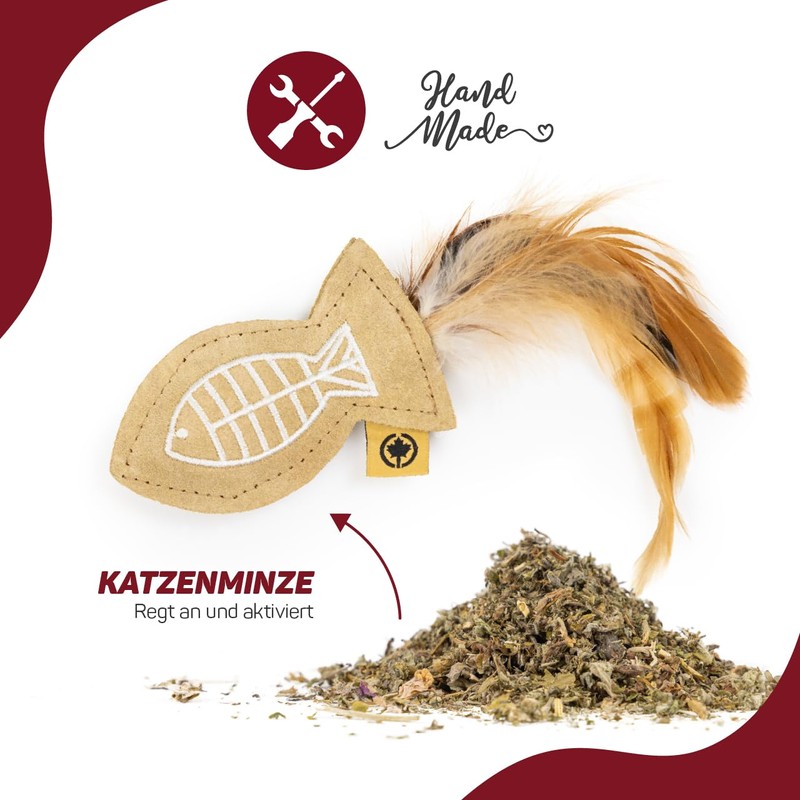 - Cute fish motif made of soft leather: the handmade cushion impresses with its cute fish design and encourages your cat to play.