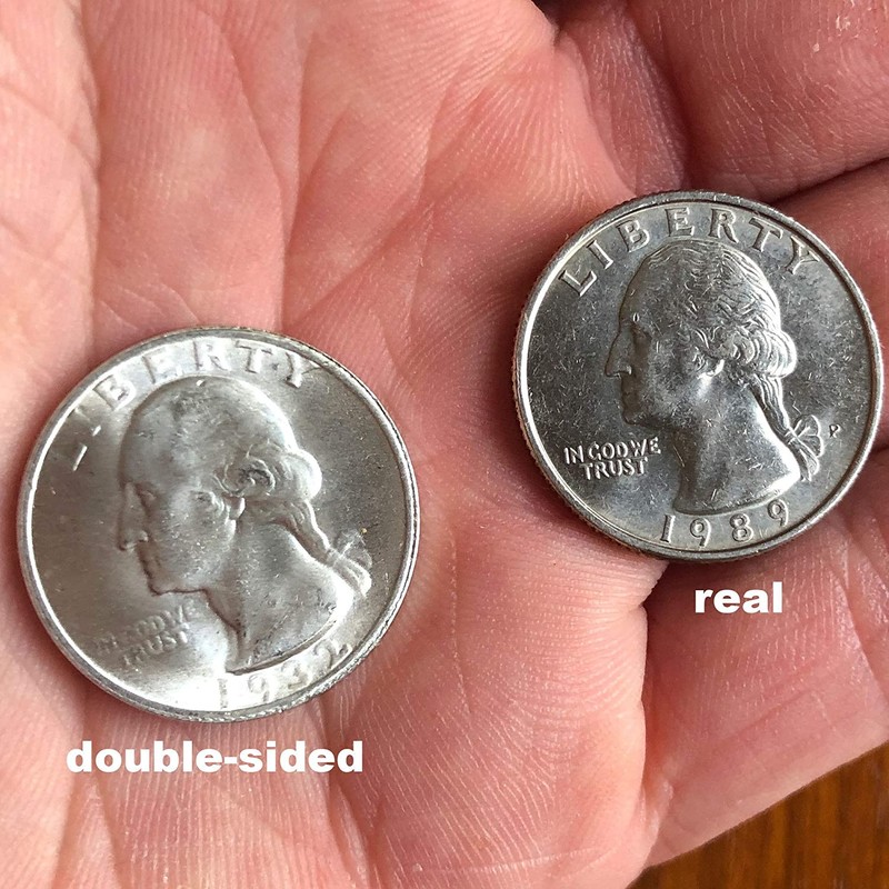 Canailles 2-Pack Double-Sided Quarters, 1 Double-Sided Heads Coin and 1 Double-Sided Tails Coin, Cool Novelty Quarter for Magic Tricks or Pranks