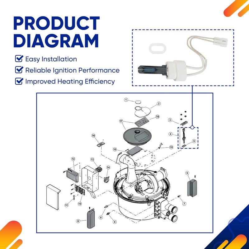 This igniter kit is designed for hassle-free installation. Simply access the igniter through the heater’s back cover, remove the old igniter and rust, and install the new igniter using two nuts. No complicated tools or professional help needed, saving you time and maintenance costs.