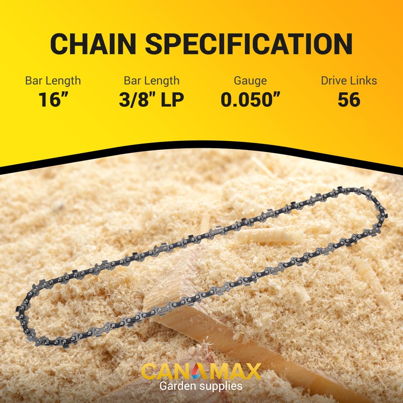 - ✅ SPECIFICATION: Bar Length: 16”; 3/8" LP pitch; Gauge 0.050”; 56 Drive Links; Pack of 3 Chains.