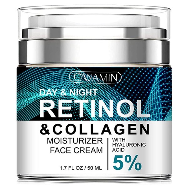 CANAMIN Retinol and Collagen Facial Moisturizer, Anti-Aging Skin Care Treatment Day and Night Collagen Moisturizer to Minimize Wrinkles, Dryness, 1.69 Oz