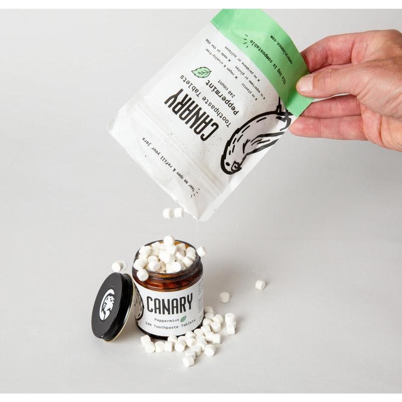 Ditch traditional toothpaste tubes and embrace a sustainable oral care routine with Plastic-Free Canary Toothpaste Tablets. Our eco-friendly toothpaste tablets offer a convenient way to maintain your dental hygiene at home, the office, or while traveling. Say goodbye to plastic waste and hello to a brighter, fresher smile!