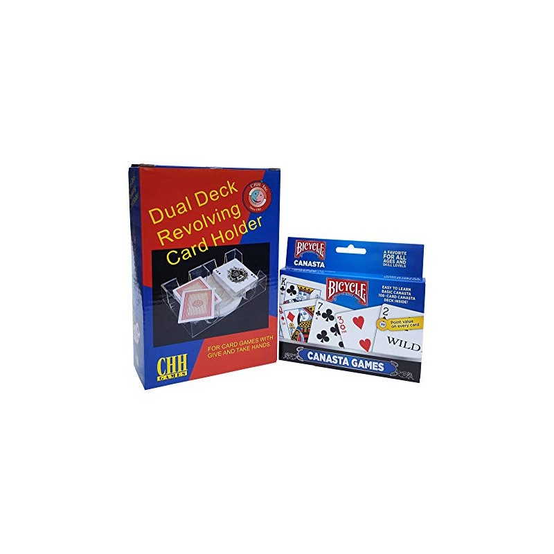 • Includes 108-card canasta game and a 2 deck revolving card holder