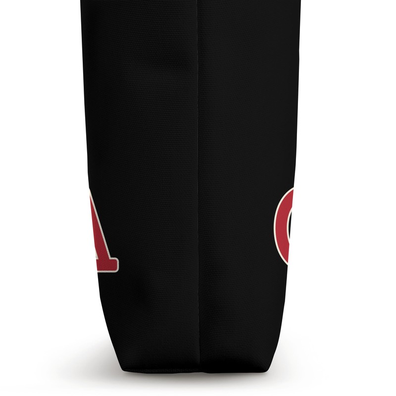 - 16” x 16” bag with two 14” long and 1” wide black cotton webbing strap handles.