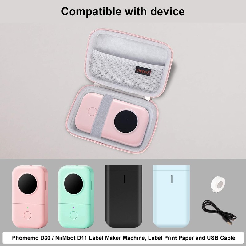 Canboc Hard Case for Phomemo D30 D35/Memoking D30/NIIMBOT D11 Label Maker, Portable Thermal Bluetooth Mini Label Printer Storage Bag, Mesh Bag fit Label Paper Tape and Cable, Pink