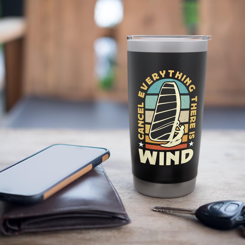 Cancel Everything There Is Wind Retro Surfboard Windsurfing Stainless Steel Insulated Tumbler