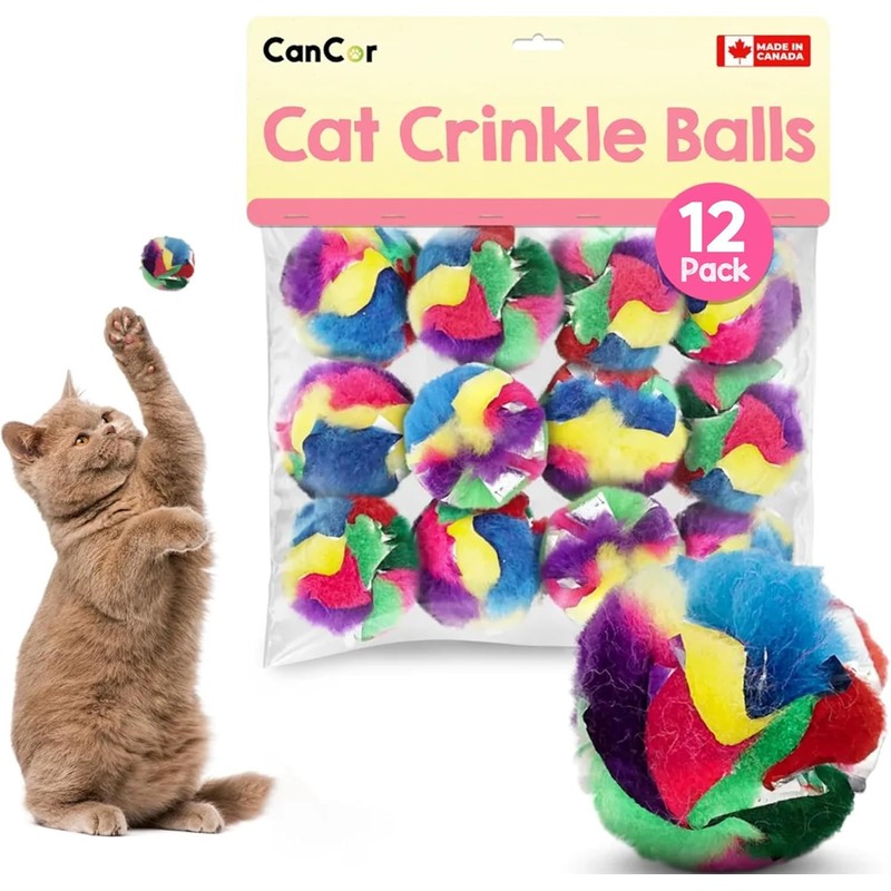 Cancor Innovations Cat Crinkle Balls 1.5 Inch | 12 Pack | Perfect Stocking Stuffer for Christmas | Soft Lightweight Indoor Cat Toys with Durable Crinkle Build and Engaging Crinkle Sound
