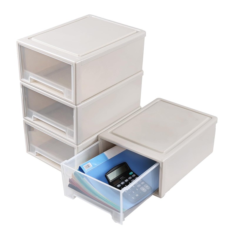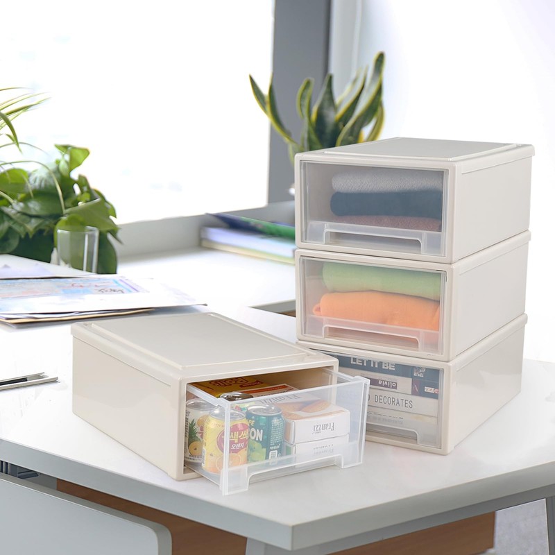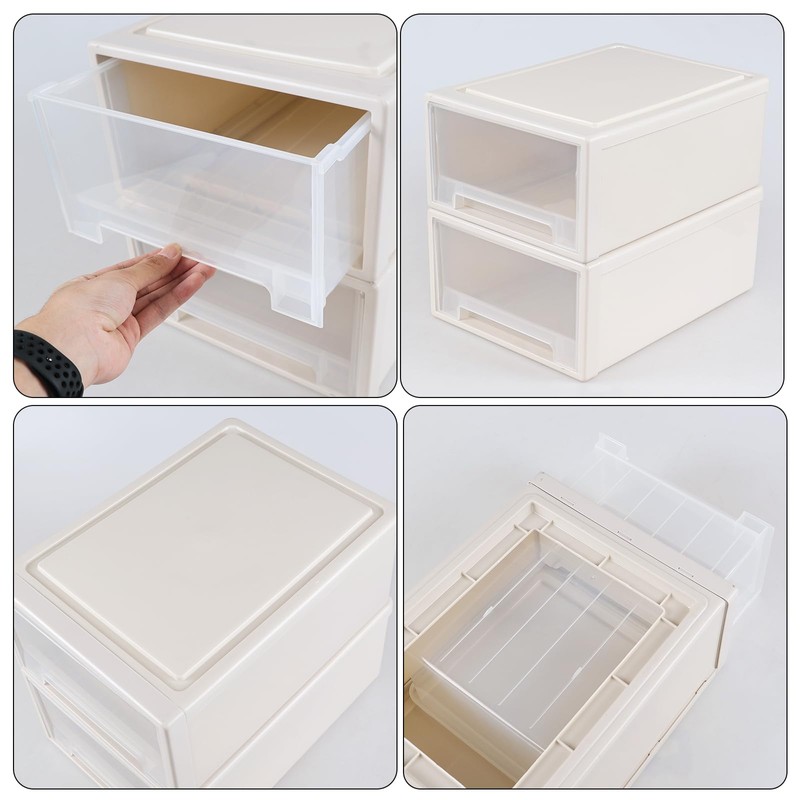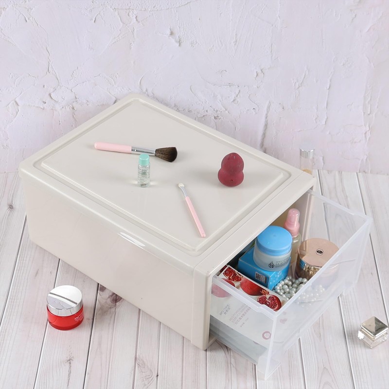 • Classic beige frame is paired with transparent drawer, suitable in home, office or dormitory, features a front built-in handle which is easy to open and close the drawer
