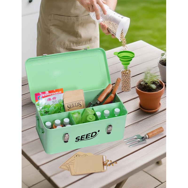 - Practical & Functional: With 4 separated compartments, this seed storage box is perfect for organizing seed packets and bottles of various sizes, bulbs, and even small planting tools. It's a practical seed organizer storage box, also great for storing tea bags, dried vegetables, and more.