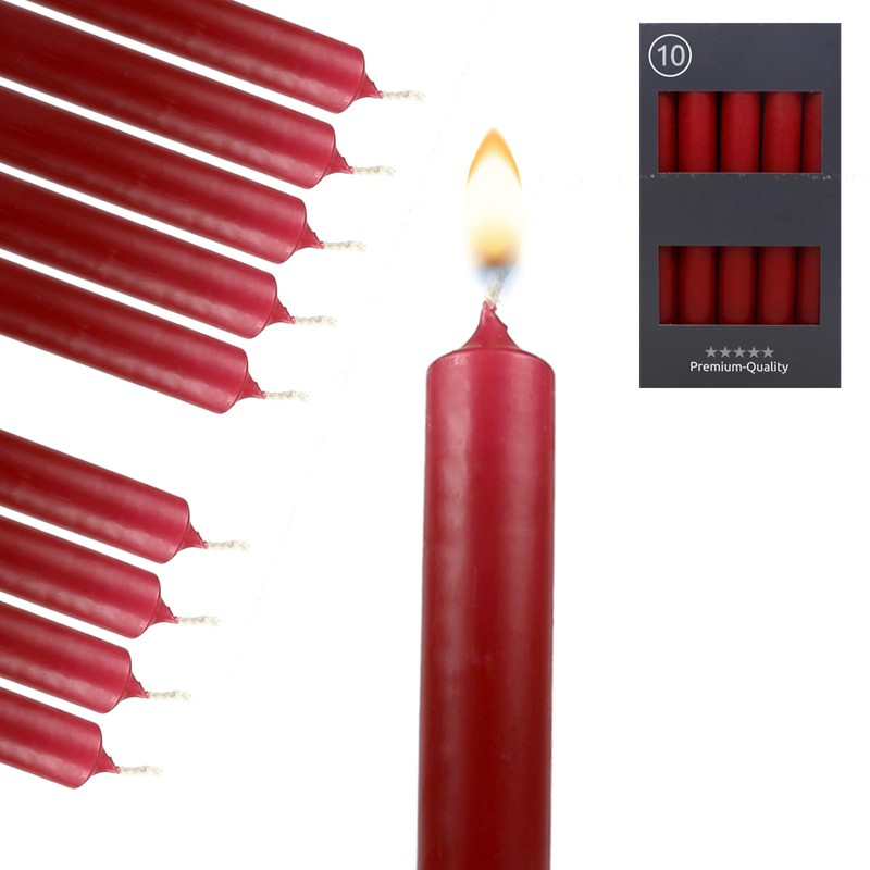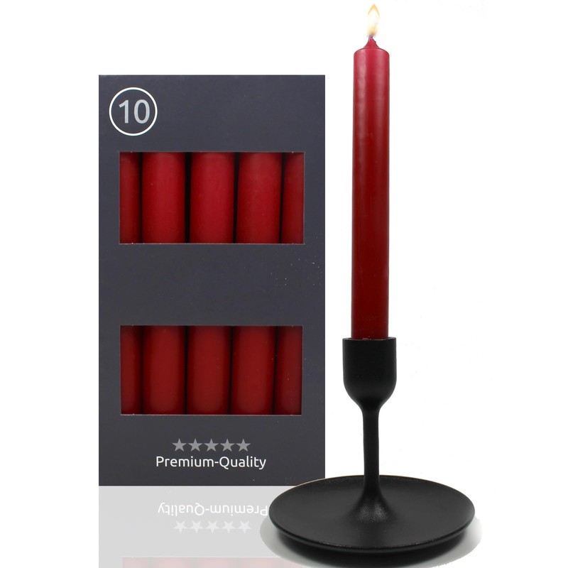 - Box contents: 10 x taper candles in stylish carmine red – also ideal as a gift – whether for Christmas, Easter or birthday
