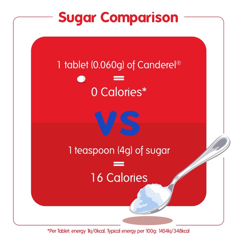 • GREAT TASTE- Our new, great tasting Canderel  650 tablets will help you reduce your calories intake and maintain a healthier balanced diet without having to compromise on the sweet taste.