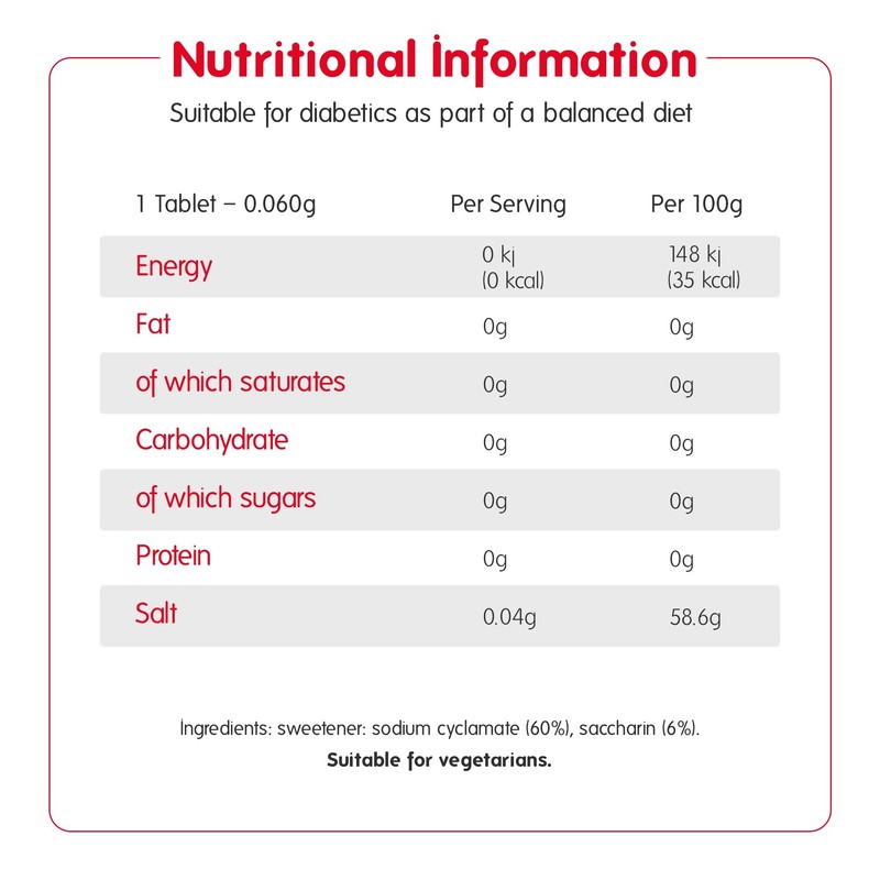 • VEGAN & VEGETARIAN FRIENDLY - Canderel 650 tablets is perfect for vegan & vegetarian diets as it contains no lactose. It’s also gluten free, Kosher and Halal certified.
