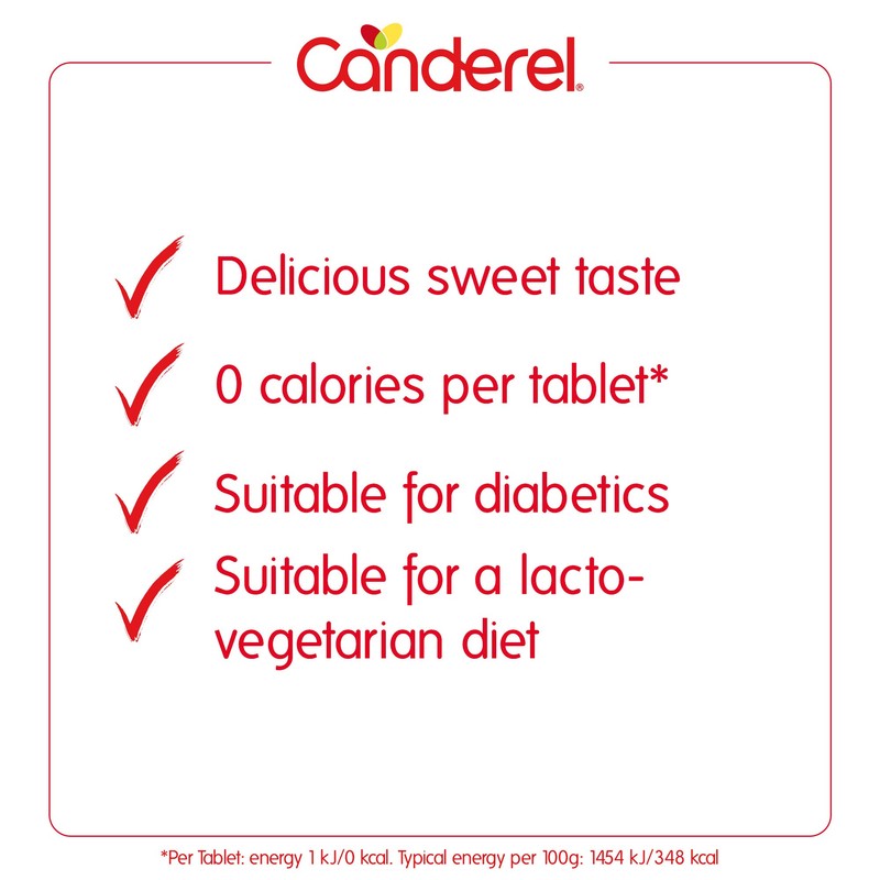 • Canderel tablets are suitable for diabetics and those who follow a kosher diet, have a delicious sweet taste and perfect for those who dislike the bitter aftertaste of other sweeteners.