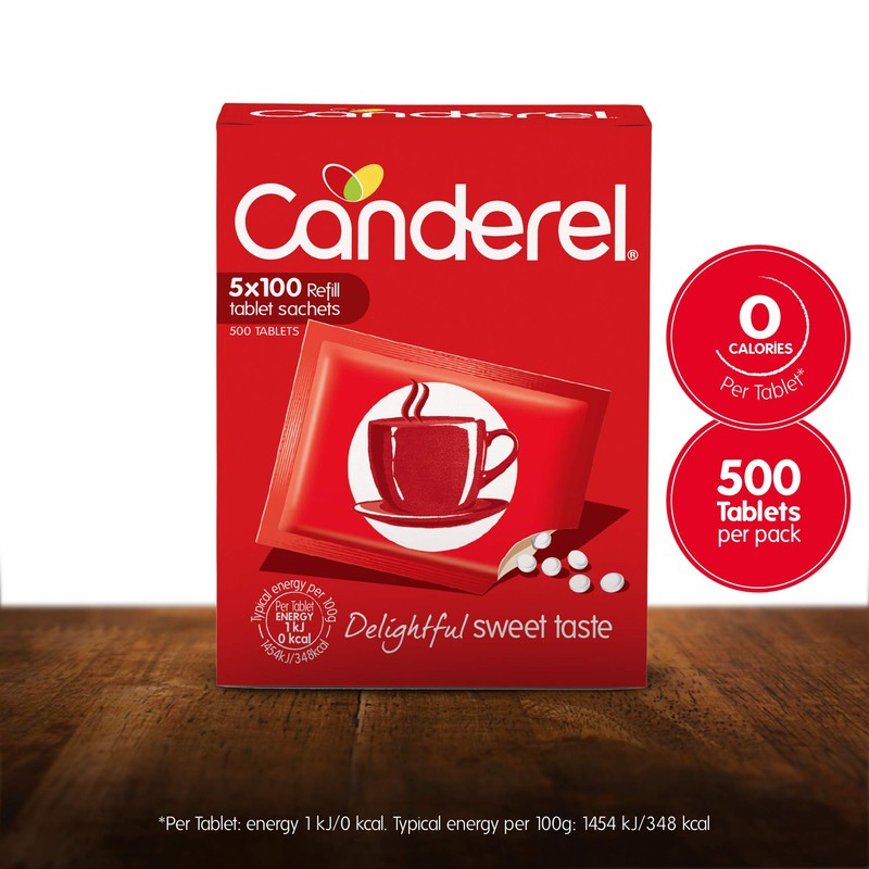 • Pop a Canderel Sweetener tablet in your daily cup of tea, coffee, lemonade or protein shake to get calorie free instant sweetness.