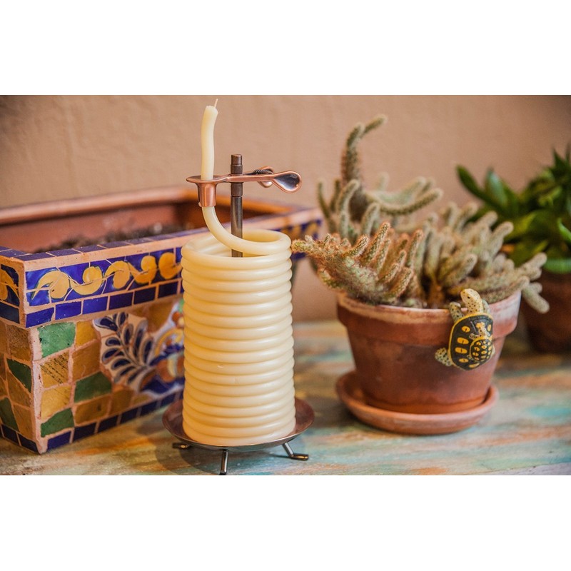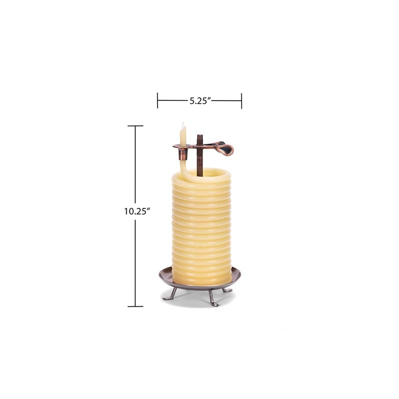 Candle by the Hour vertical candle is easy to use and lasts hours upon hours. Merely place the beeswax coil through the spring loaded clip in increments of 3 inches or less. Each three inches of candle wax will burn approximately one hour.