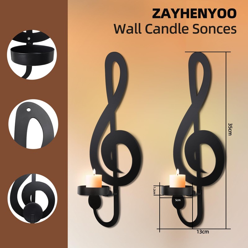 Candle Sconces Set of 2 Wall Musical Note Sconces Decor Wall Mounted Metal Candle Holders with Foldable Tray ZAYHENYOO (2, XL)