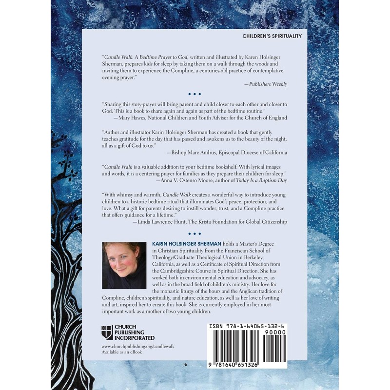 This beautifully illustrated picture book invites families to enter into a calm, contemplative quieting-down based on a centuries-old practice of evening prayer from the Christian liturgical tradition. Like the beloved Office of Compline, the book helps children “complete” their day and prepare for sleep, fulfilling a hunger for a bedtime prayer that is not simply intercessory, but offers an opportunity to practice listening and contemplation. Appropriate for toddlers and school children alike, Candle Walk is a wonderful way to prepare children for sleep, assured of the nearness of God.