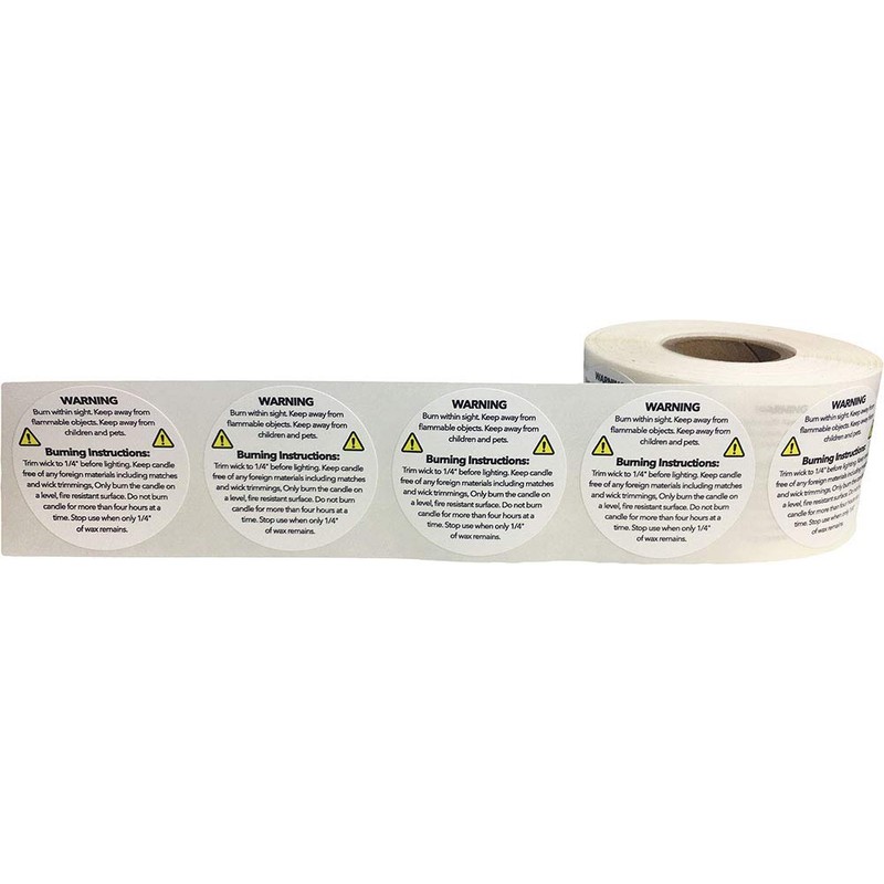 Candle Warning Instruction Labels 1.5 Inch 500 Total Stickers