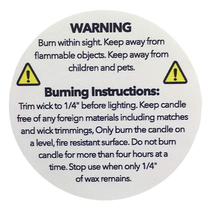 These are warning labels for candles to explain burning instructions. They are 1.5" inch round and will adhere nicely to the bottom of candles.