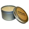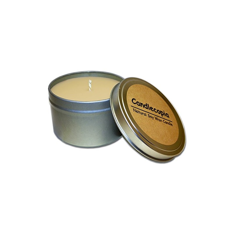 - Woody notes similar to patchouli, with touches of powder, musk, amber, and vanilla. 8 ounce Tin.. Ingredients: Natural Soy Wax, Lead and Zinc Free Cotton Core Wick, Essential Oil Fragrance Blend. Specially constructed with raised safety feet that keep surfaces cooler! Our convenient travel-size tin with lid protects the candle and seals in its intense fragrance