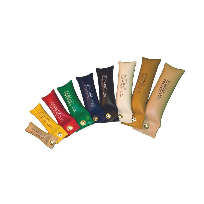 Use the comfortable CanDo SoftGrip hand weights instead of dumbbells. The product was developed by a patient during a physical therapy session. She was having difficulty grasping the 2 pound dumbbell prescribed to her as her hand was too big. She wanted something that would conform to her grasp, be comfortable, and unintimidating. SoftGrip hand weights are also great for light workouts and for the arthritic patient. The SoftGrip is soft but not floppy, color-coded to indicate weight, and has a grommet hole for storage on hooks. Available individual or in pairs.