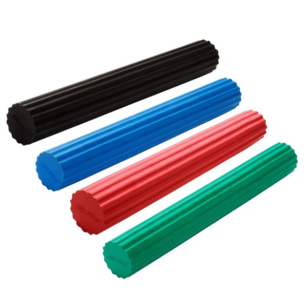 CanDo Twist-n-Bend Hand-Wrist Exercise Bars - 4-Piece Bundle - Red, Green, Blue, Black The CanDo flexible hand bar exerciser is a lightweight, portable exerciser designed to strengthen muscles in the hand, wrist and shoulder. Also promotes coordination and increases range-of-motion. The bar is a perfect size for twisting and bending it. Perform oscillation movements for neuromuscular and balance training. Use for soft tissue and joint mobilization. .The 12 inch long rubber bar utilizes the same graduated progressive color code as other CanDo products: * Tan - XX-light. * Yellow - X-light * Red - Light * Green - Medium * Blue - Heavy * Black - X-Heavy. Consistent bar diameter and length throughout resistances means you use the same muscles with each resistance.