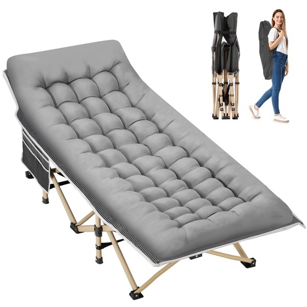 Candockway Folding Camping Cot with Comfy Mattress(Stripe Grey),600LBS(Max Load),Portable Cot Bed for Adults Include Carry Bags,28" Wider Sleeping Cots for Home,Office Nap,Outdoor Travel Camp Beach