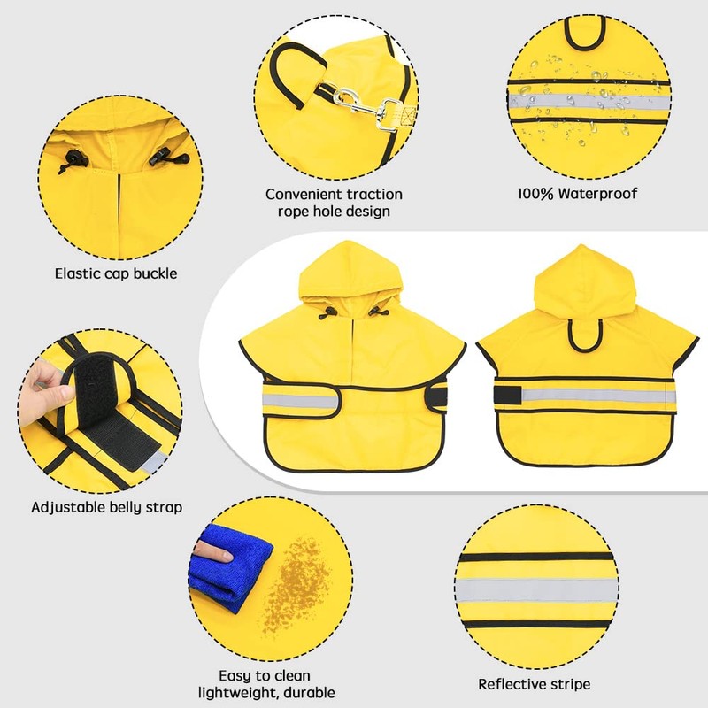 - ☔【Waterproof Dog Raincoat】--- This dog raincoat is made from 100% polyester waterproof fabric and will keep your dog comfortable & dry even in the worst weather conditions. And it's so lightweight that your dog can wear it all day without being burdened.