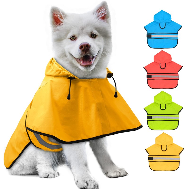 Candofly Dog Raincoat Hooded Poncho - Adjustable Waterproof Dog Rain Jacket Lightweight Reflective Dog Rain Coat Pet Slicker for Small Medium Large Dogs (Small, Yellow)