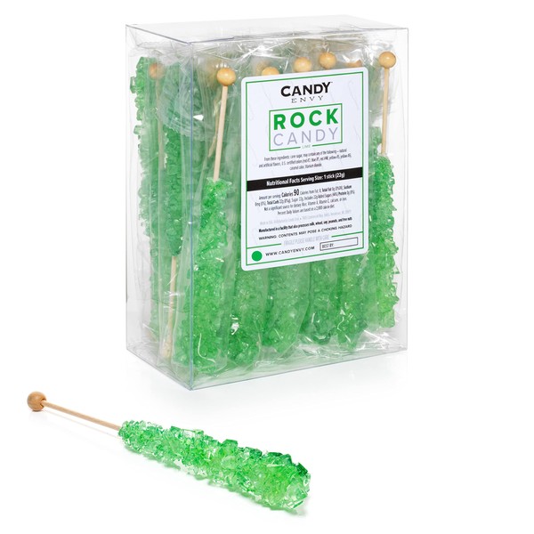 - Green Colored with Delicious Lime Flavor Infused throughout each Crystal Rock Candy Stick
