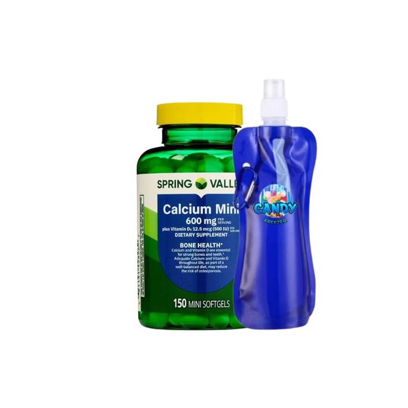 Candy Freezer Spring Valley Calcium Plus Vitamin D3 150 Mini Softgels | Calcium Supplement | CaIcium mini softgels | CaIcium 600 mg with Vitamin d3 | 150 Mini Softgels Collapsible Bottle