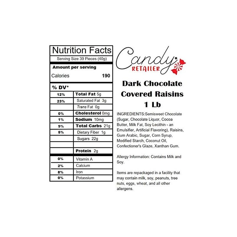 Candy Retailer Dark Chocolate Covered Raisins 1 Lb