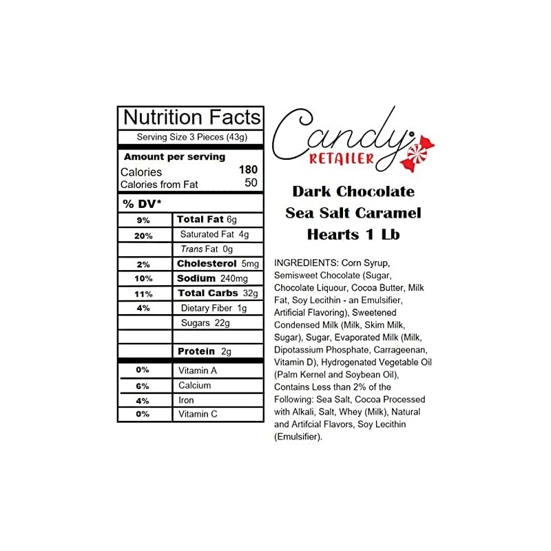 Candy Retailer Dark Chocolate Sea Salt Caramel Hearts 1 Lb